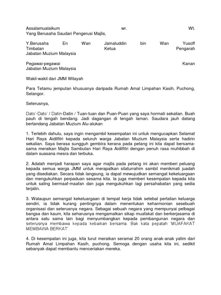 Aidilfitri ucapan hari raya sempena pkp. Calon yang dilantik di bawah seksyen 12 1 a ii AktaPerubatan 1971 dan telah Kumpulan. Teks ucapan alu-aluan kem ko-akademik bahasa ingg.